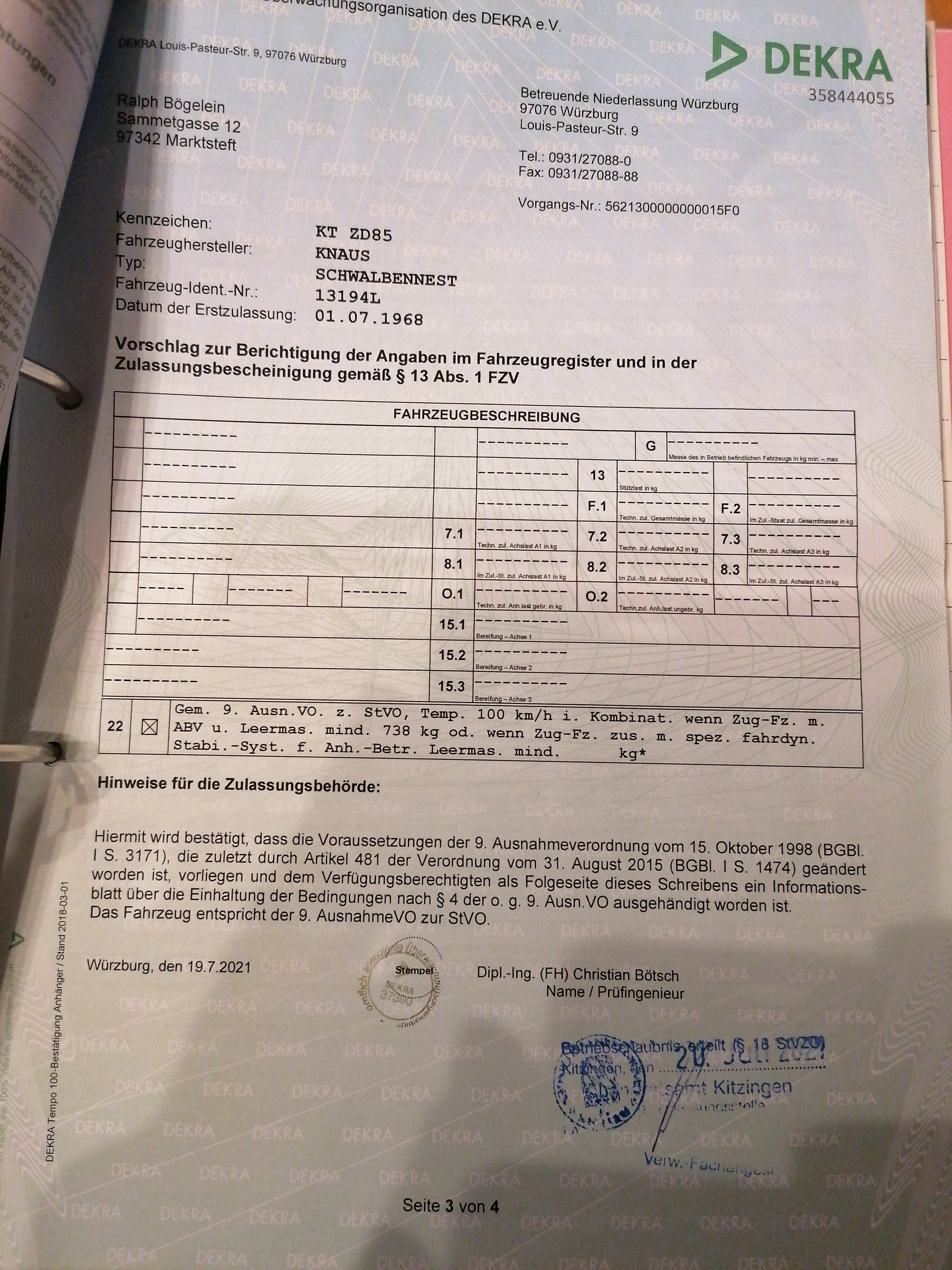 Am 13.8. habe ich nun einen Termin bei der Zulassungsstelle um den Deckel drauf zu machen.