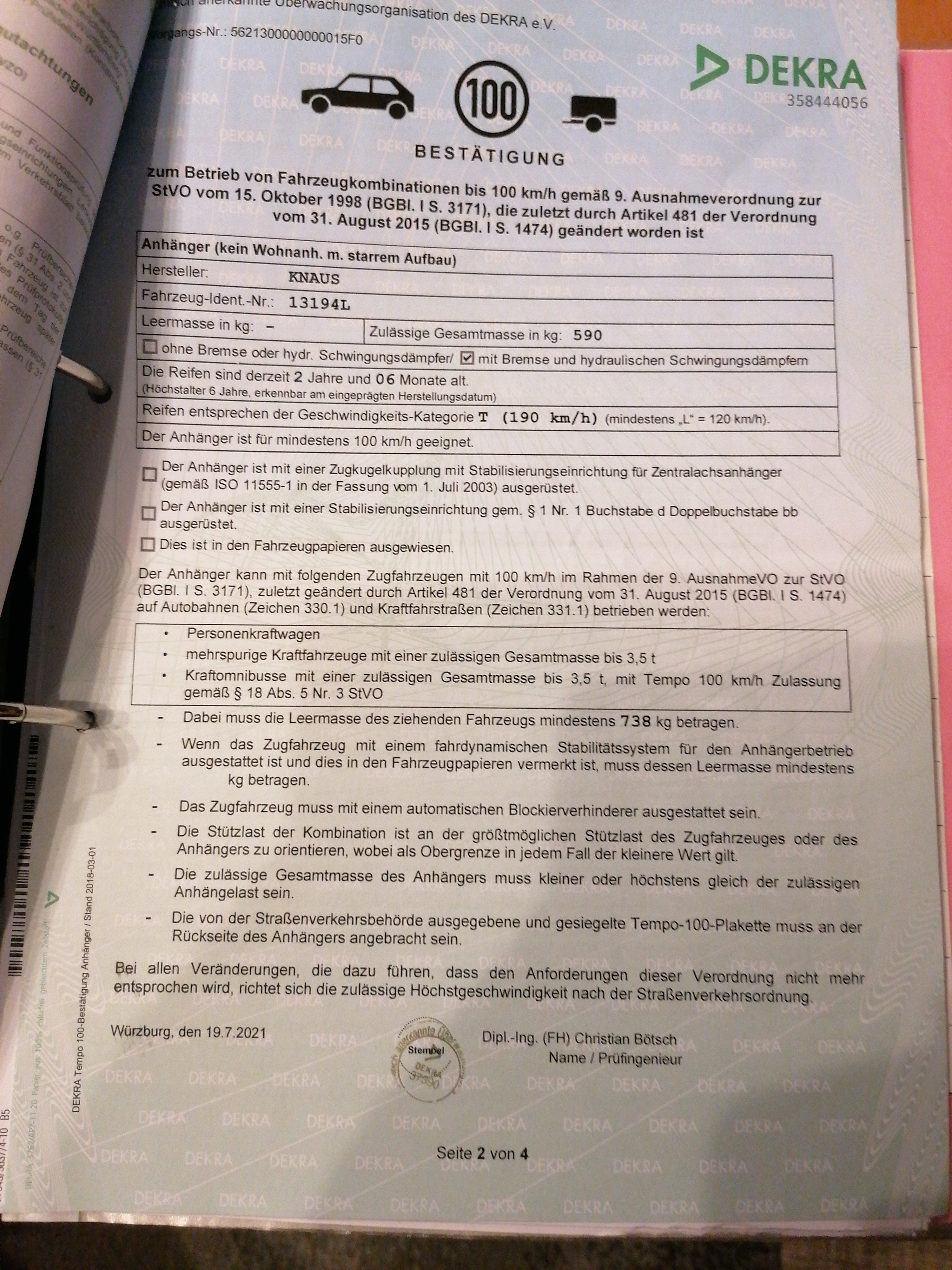 ich hätte ohne auch weiterleben können.Fahre mit Anhängsel immer so 90kmh,mit 80er-Zulassung zu schnell,mit der 100er ist es halt abgesegnet