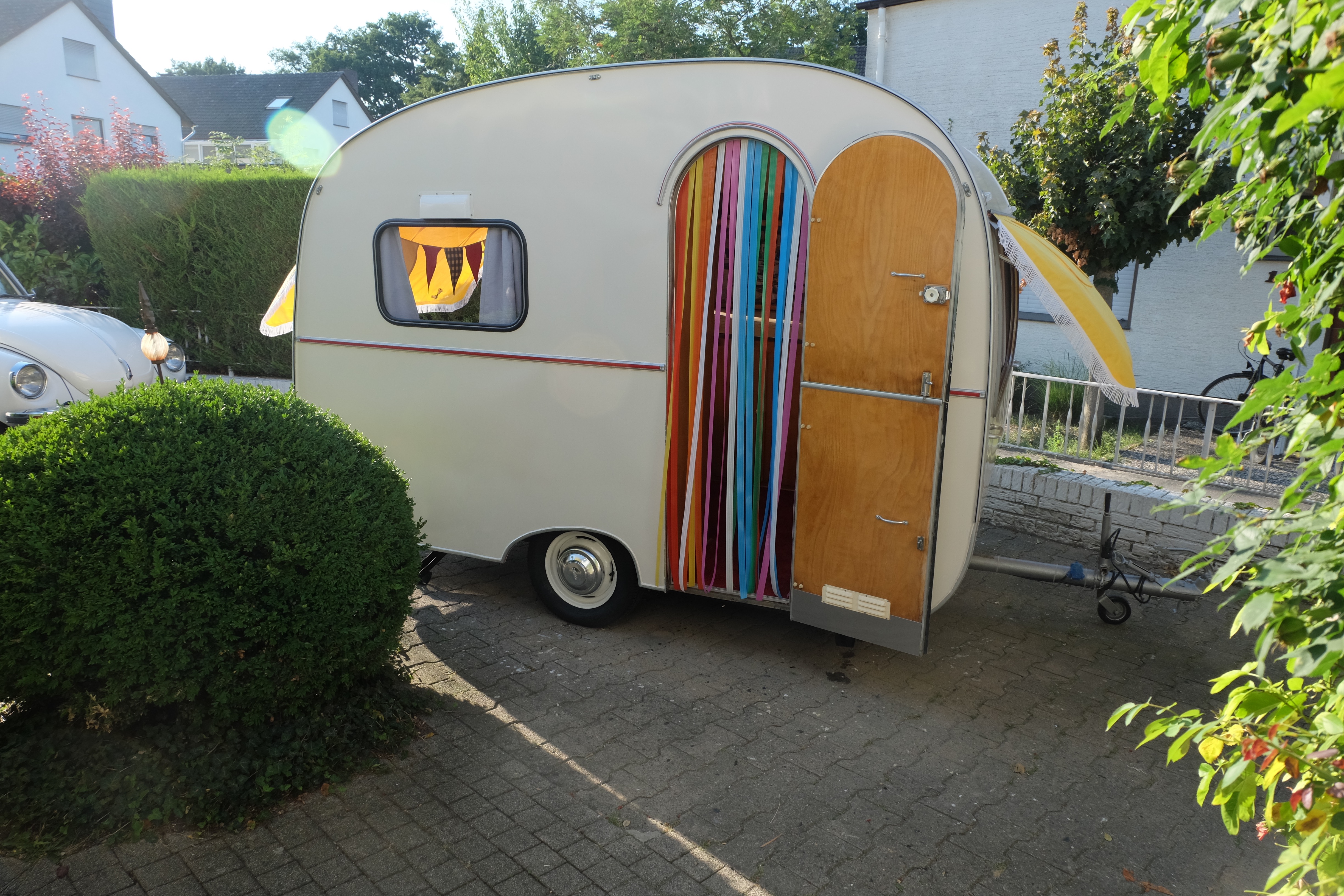 Wir hatten an unserem Tabbert vom Vorbesitzer noch so einen Flausch-Vorhang zur Abwehr von Fliegen an der Türe hängen.