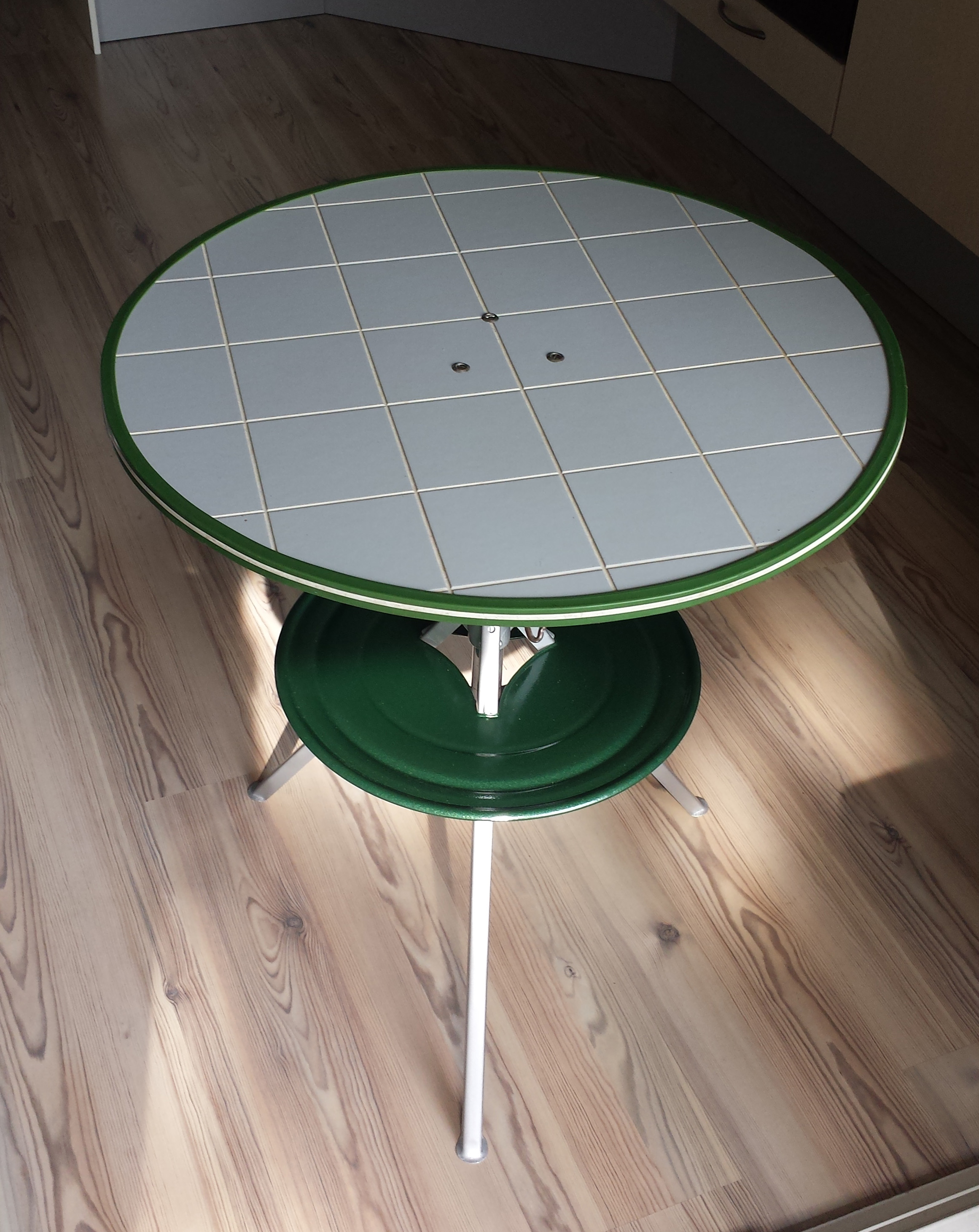 Vielen Dank für den Tipp! Die Anzeige hatte ich auch schon gesehen, und Sprelacart wäre natürlich auch eine Option gewesen. Aber eine Platte in Rot war jetzt nicht mein Farbschema - ich hatte gelb, grün oder blau im Sinn, bevorzugt mit einem Muster im 50er/60er Jahre Design. Aber ich bin mittlerweile schon fündig geworden, und zwar auf dem eigenen Dachboden