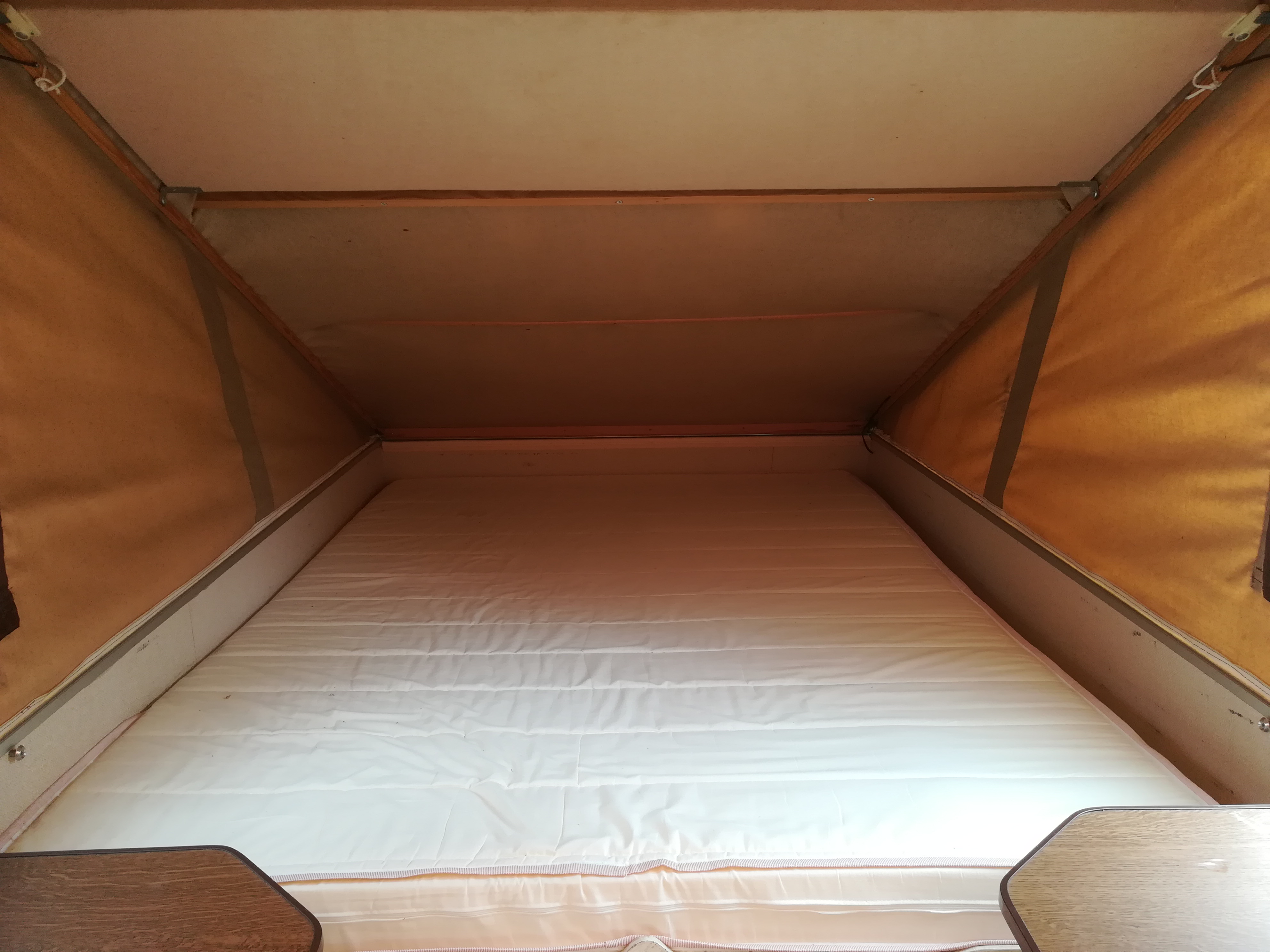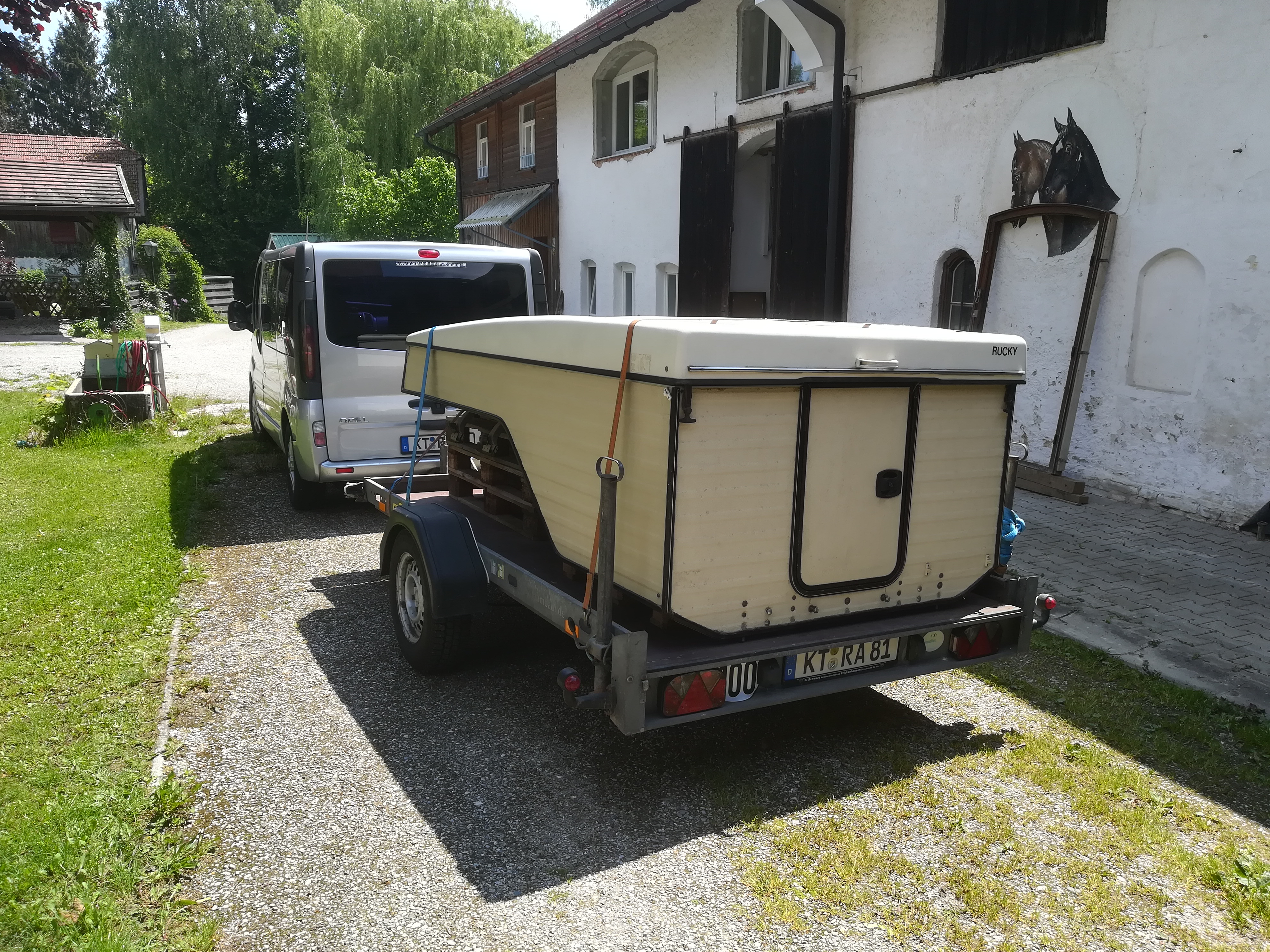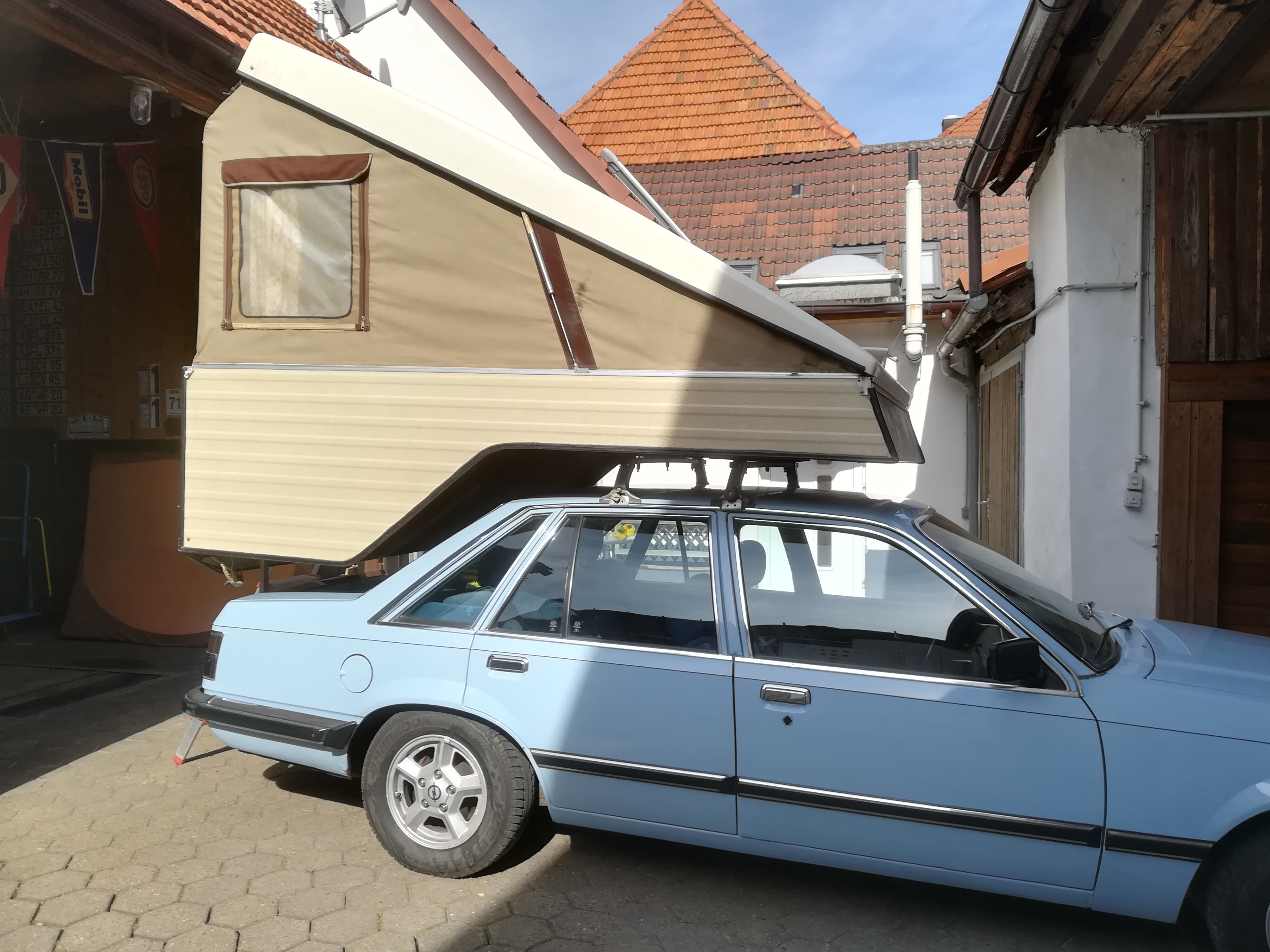 Durch die Vermittlung von Karsten bin ich an einen Rucky gekommen. Wir haben ihn letzte Woche in Oberbayern mit dem Anhänger abgeholt, und die letzten Tage haben wir ihn auf unseren Senator gebastelt. Hinten habe ich eine spezielle Halterung auf die Anhängerkupplung gebaut. die schaumstoffmatratze war völlig hinüber da haben wir jetzt eine Matratze mit 1,40 m mal 2 m rein. Passt so ganz gut.