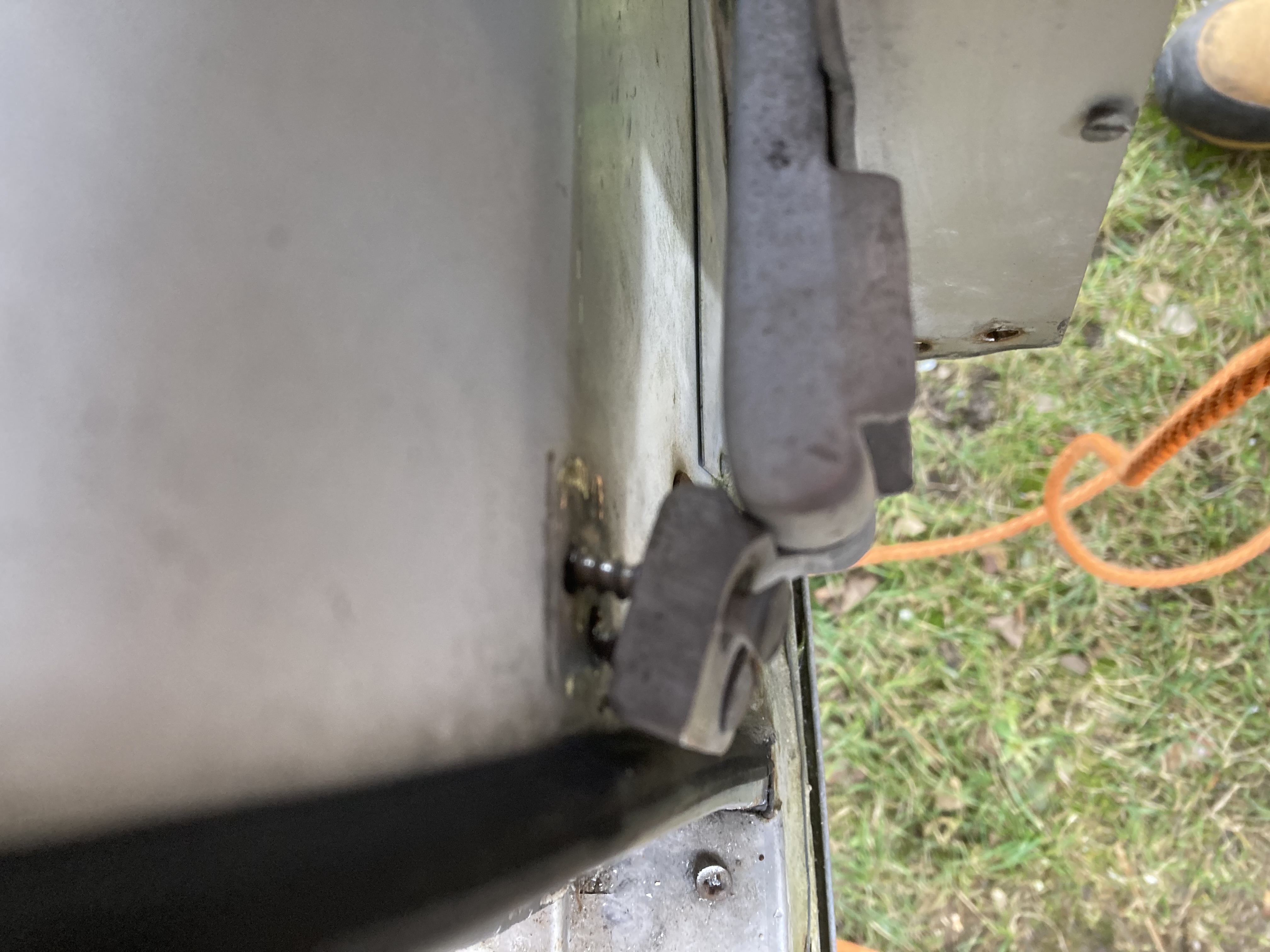 Der Balken hinter dem Scharnier ist,Gottseidank, noch von guter Konsistenz ;)