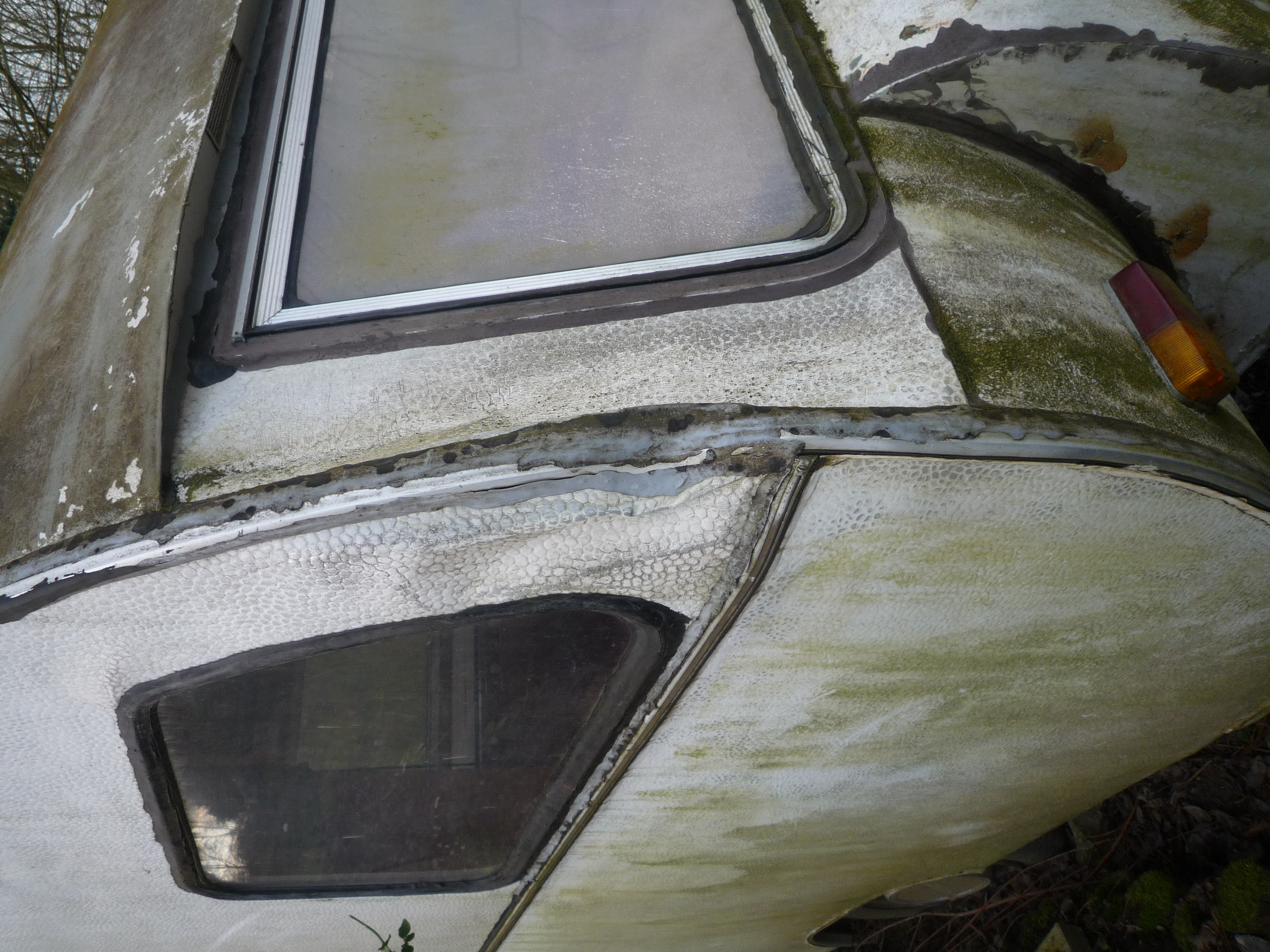 Was mich störte war, dass alle Fenster gerissen und blind sind, sämtliche Gummis gerissen und zugekleistert, eine eingedrückte Karosserieecke und die festsitzende Bremse.